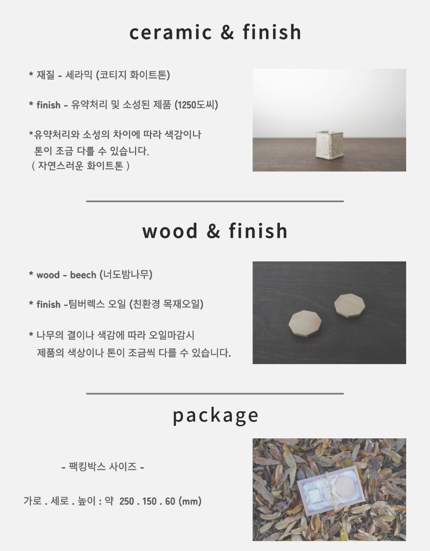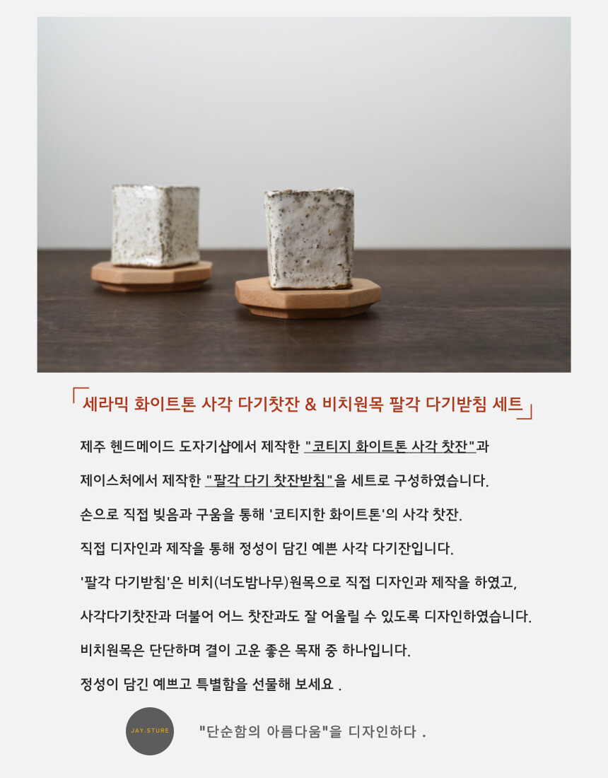 사각 다기찻잔 화이트톤 팔각 원목 찻잔받침대 세트