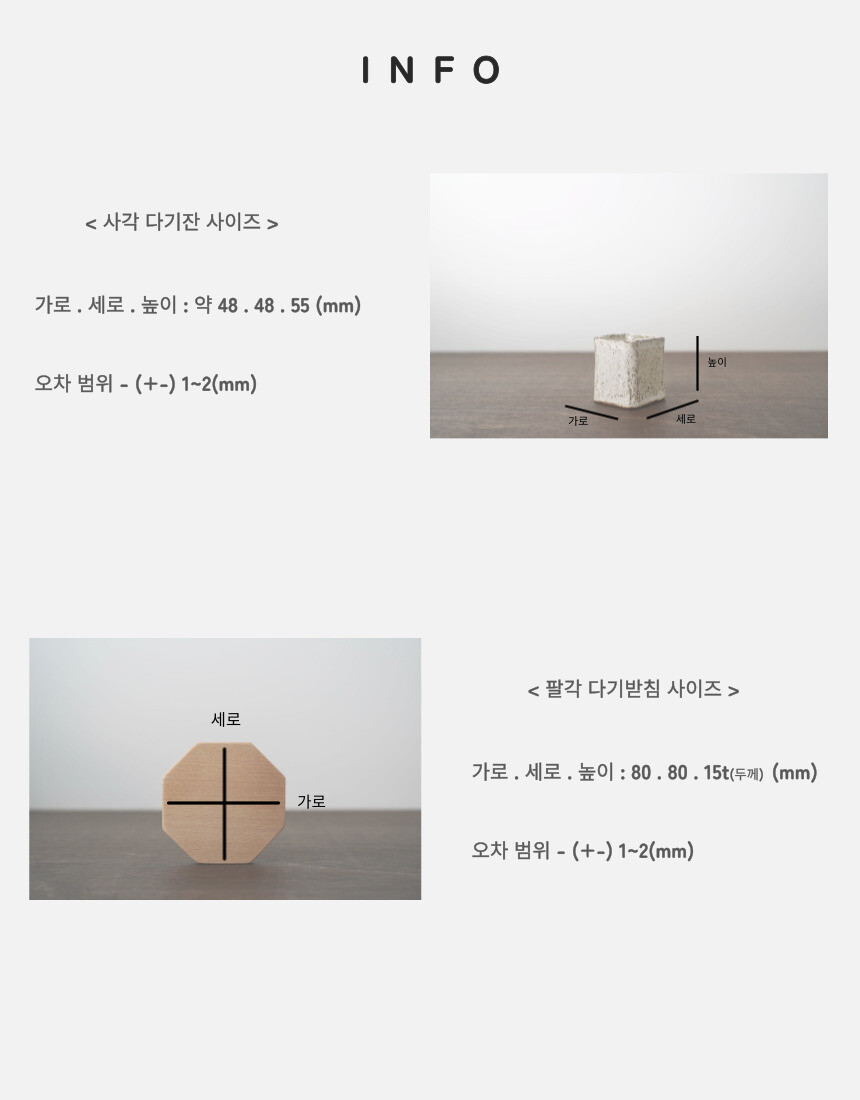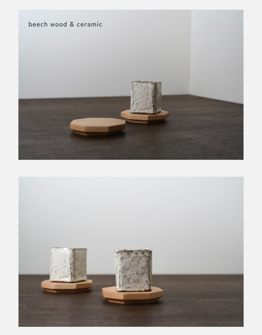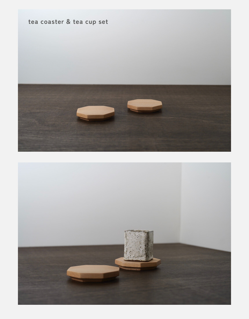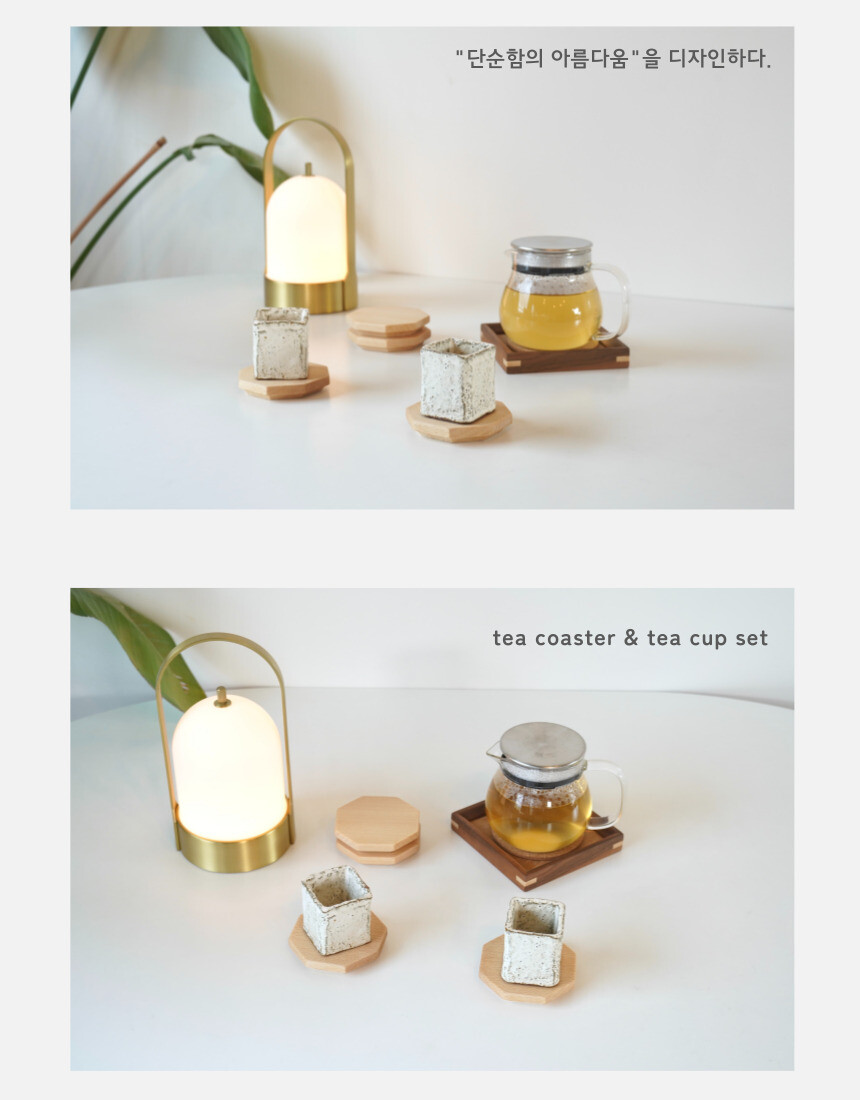 " 사각 다기찻잔 화이트톤 팔각 원목 찻잔받침대 세트 "