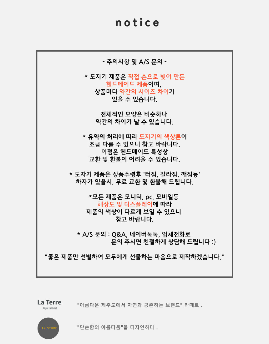 - 제품 특성상 단순 변심, 부주의에 의한 제품 손상 및 파손, 사용 및 개봉한 경우 교환/반품이 불가합니다.
