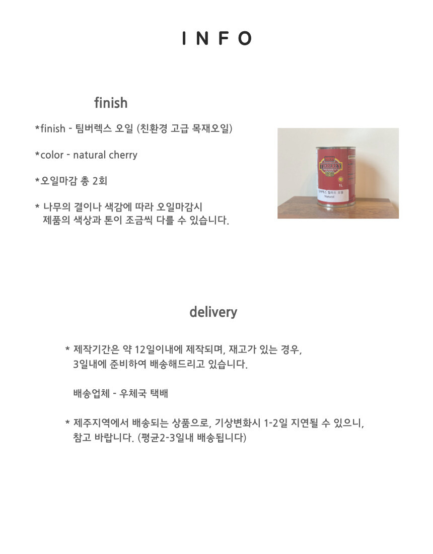 - 기본 배송기간 이상 소요되는 상품이거나, 품절 상품은 공지 및 개별 연락을 드립니다.