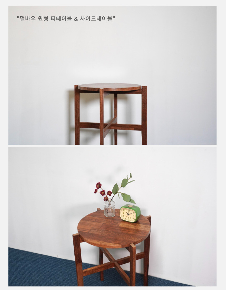 멀바우집성 원목 원형 티테이블 & 사이드테이블
