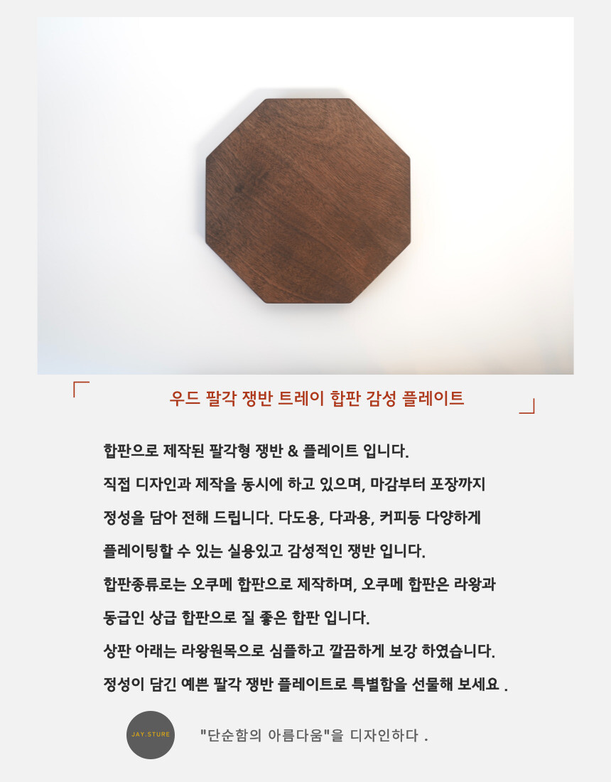 우드 팔각 쟁반 트레이 합판 감성 플레이트