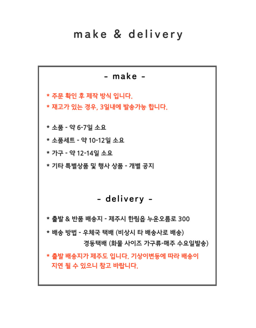 가구류 약12-14일소요, 세트상품 10-12일소요 됩니다.