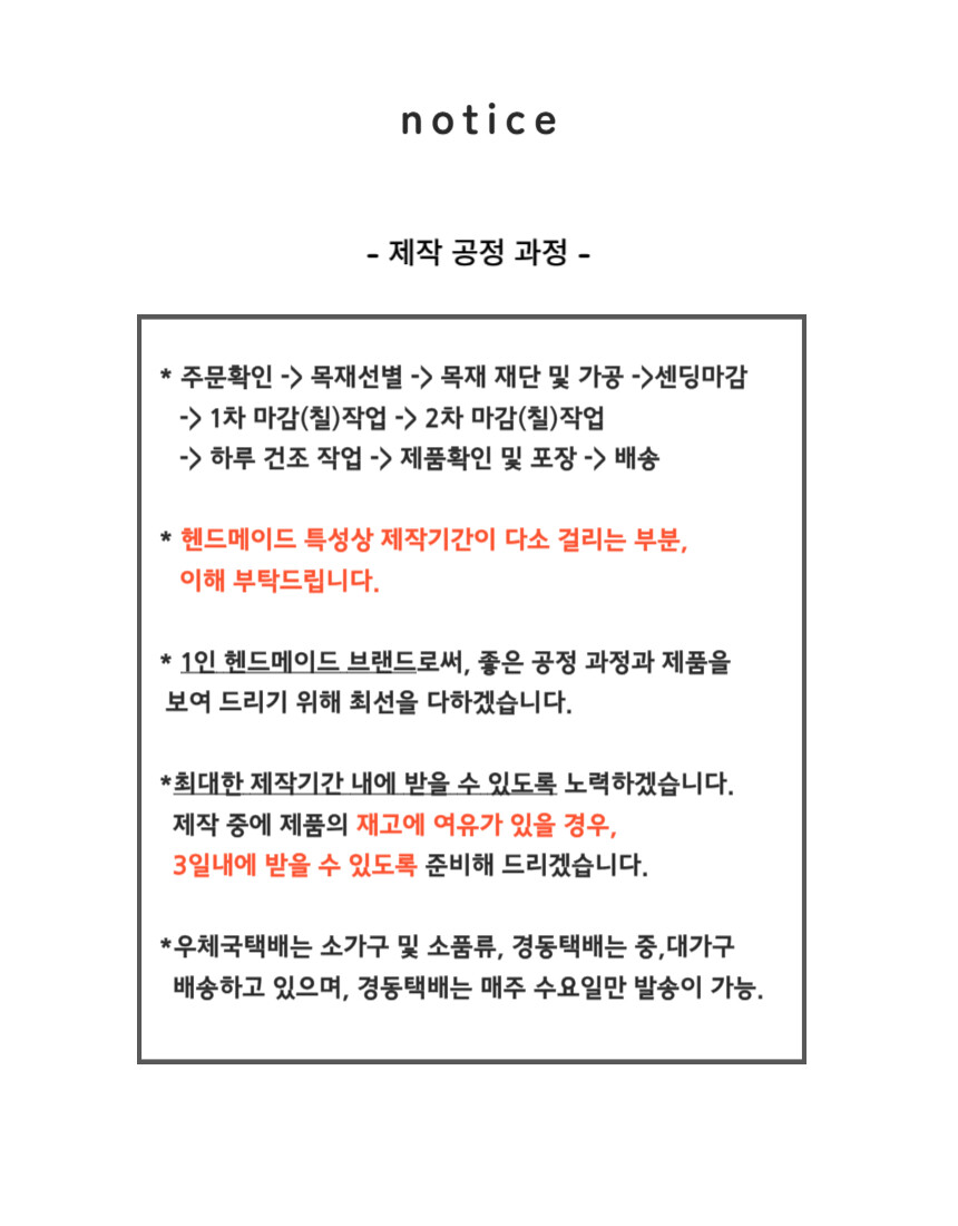 - 기본 배송기간 이상 소요되는 상품이거나, 품절 상품은 공지 및 개별 연락을 드립니다.